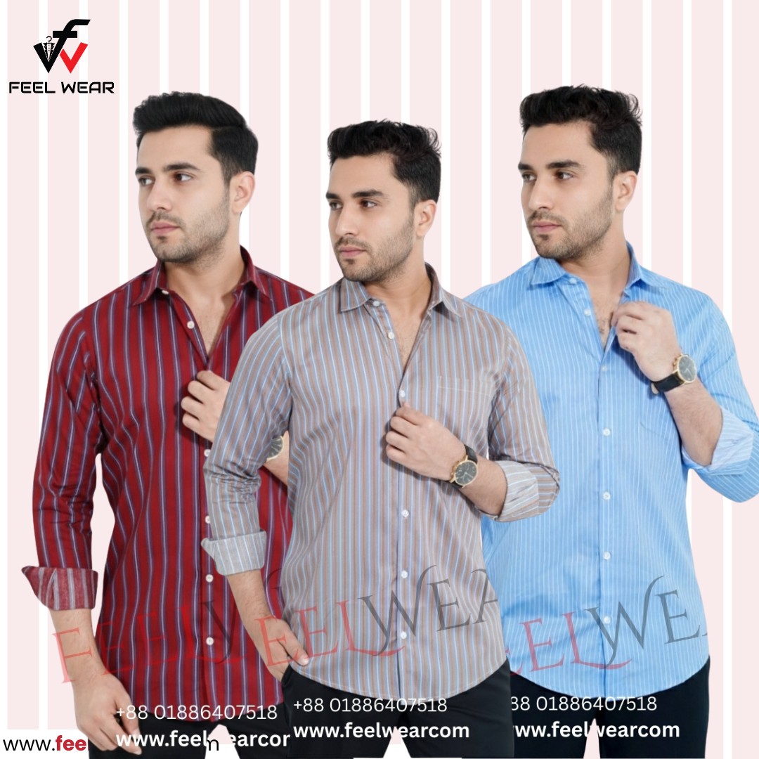 ৩ পিস কম্বো ফুল হাতার চেক শার্ট - 1106