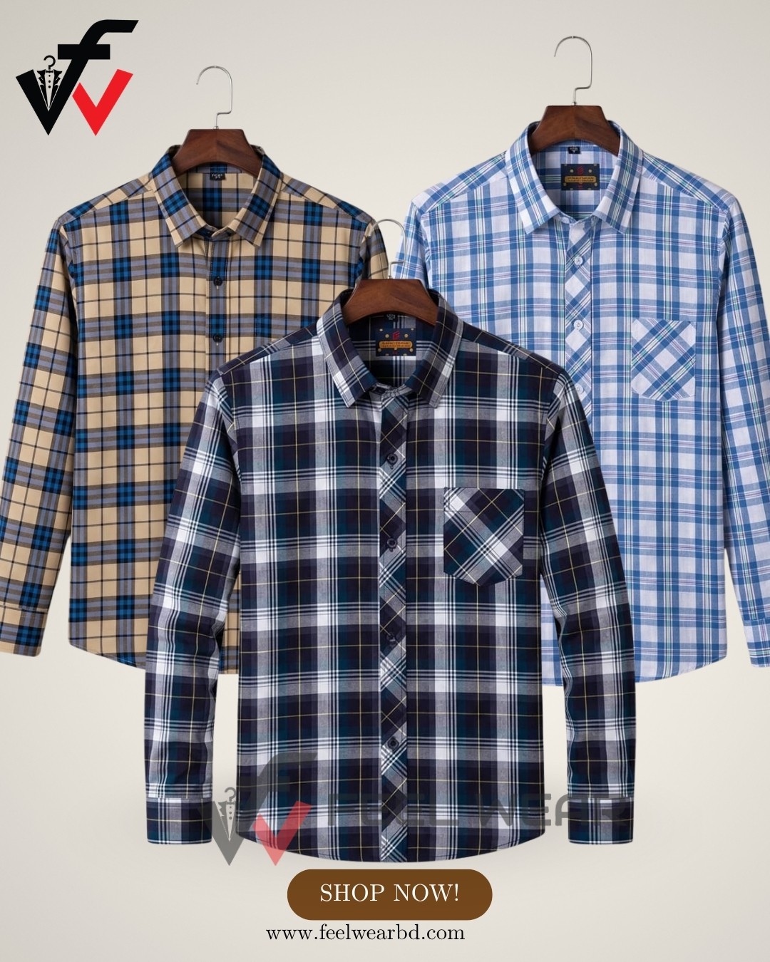 ৩ পিসের কম্বো ফুল হাতা শার্ট - 1231