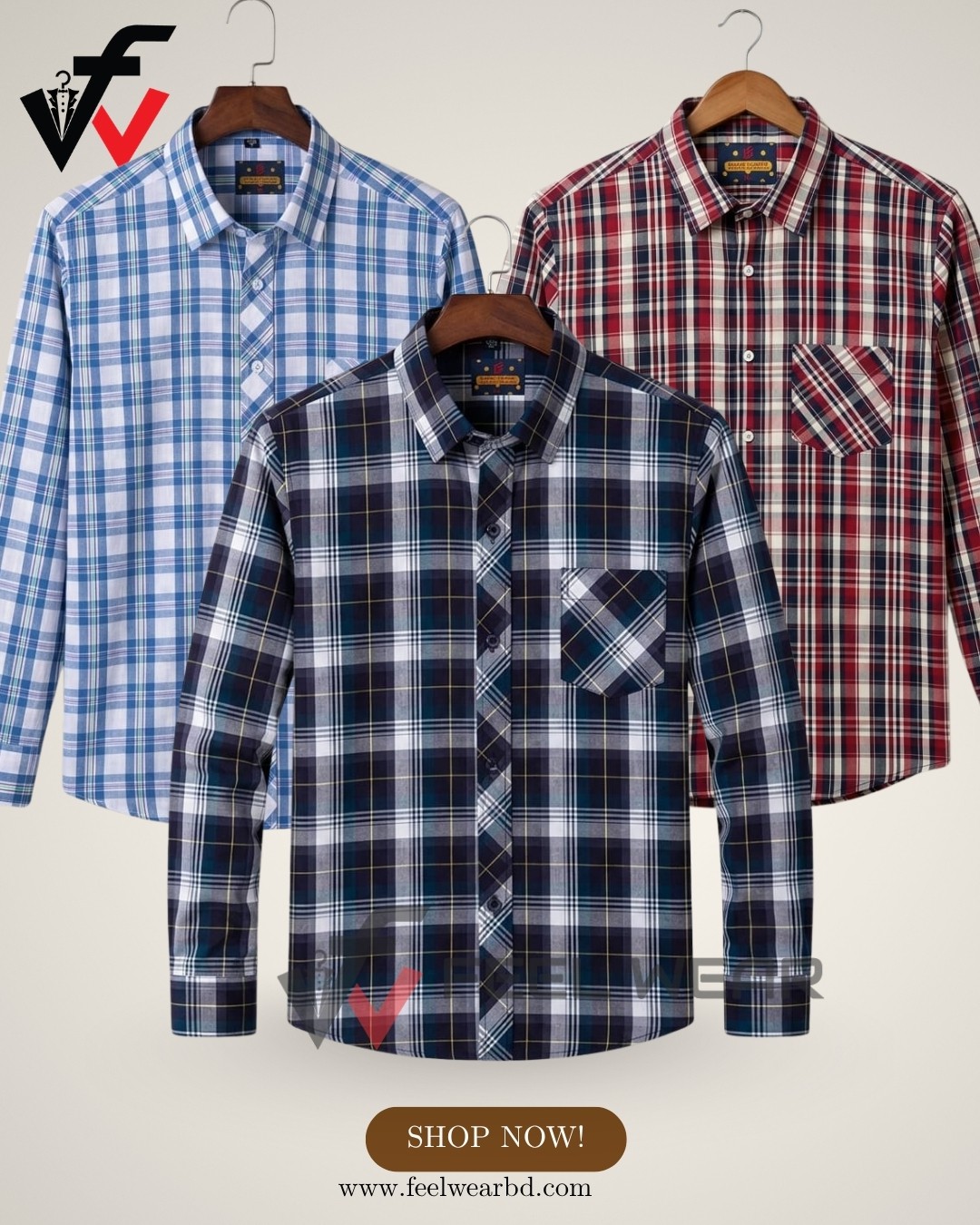 ৩ পিসের কম্বো ফুল হাতা শার্ট - 1232