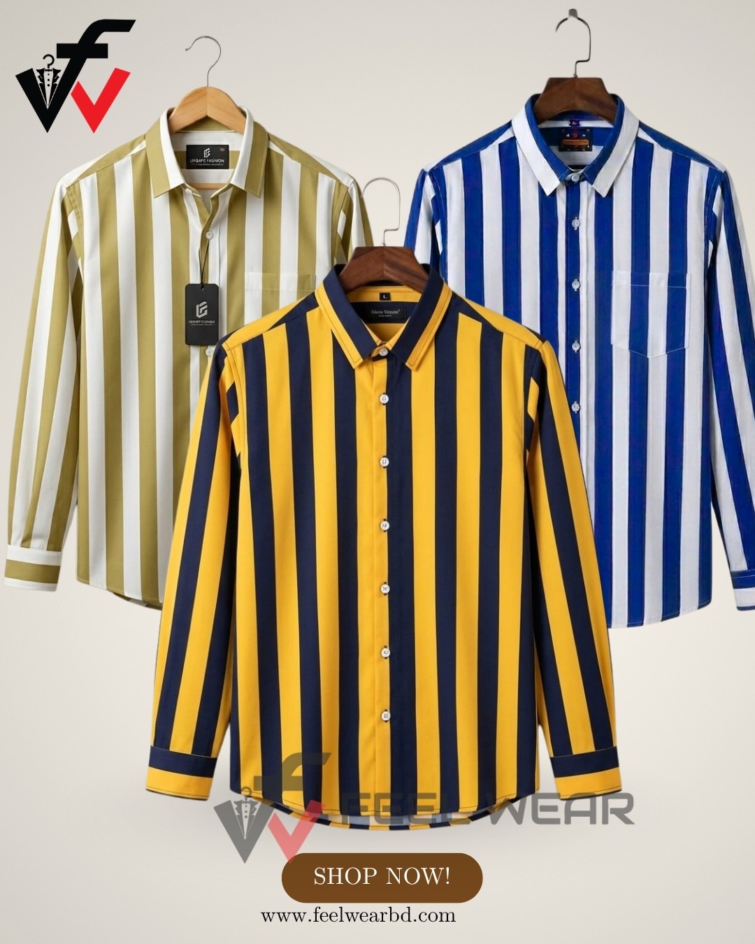 ৩ পিসের কম্বো ফুল হাতা শার্ট - 1235