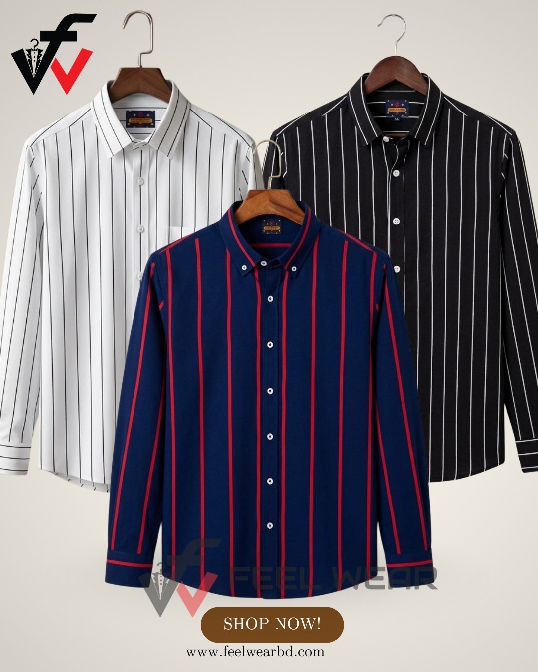 ৩ পিসের কম্বো ফুল হাতা শার্ট - 1238