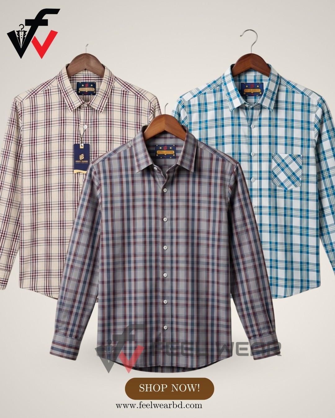৩ পিসের কম্বো ফুল হাতা শার্ট - 1241